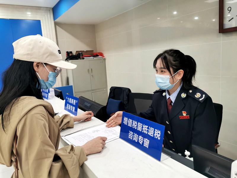 纳税人在税务部门增值税留抵退税咨询专窗咨询。国家税务总局供图
